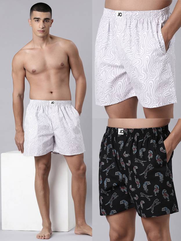 The JOVEN Men Printed Side Pocket Boxers (Pack of 2) offer a blend of comfort, style, and practicality, making them an essential addition to any man's wardrobe. Crafted from 100% pure cotton, these boxers are designed to provide all-day comfort, whether you're lounging at home or on the move. Each pair features side pockets, providing convenient storage for small essentials like keys or a mobile phone.