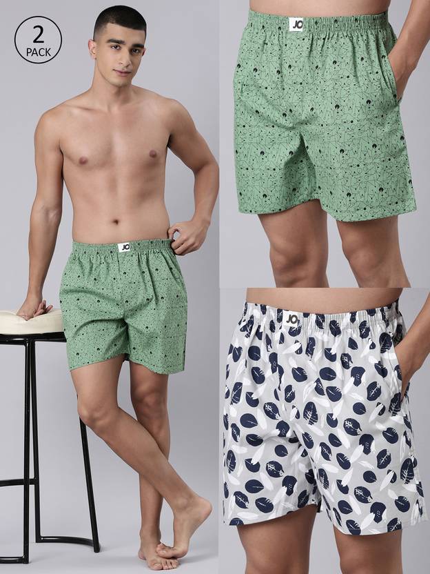 The JOVEN Men Printed Side Pocket Boxers (Pack of 2) offer a blend of comfort, style, and practicality, making them an essential addition to any man's wardrobe. Crafted from 100% pure cotton, these boxers are designed to provide all-day comfort, whether you're lounging at home or on the move. Each pair features side pockets, providing convenient storage for small essentials like keys or a mobile phone.