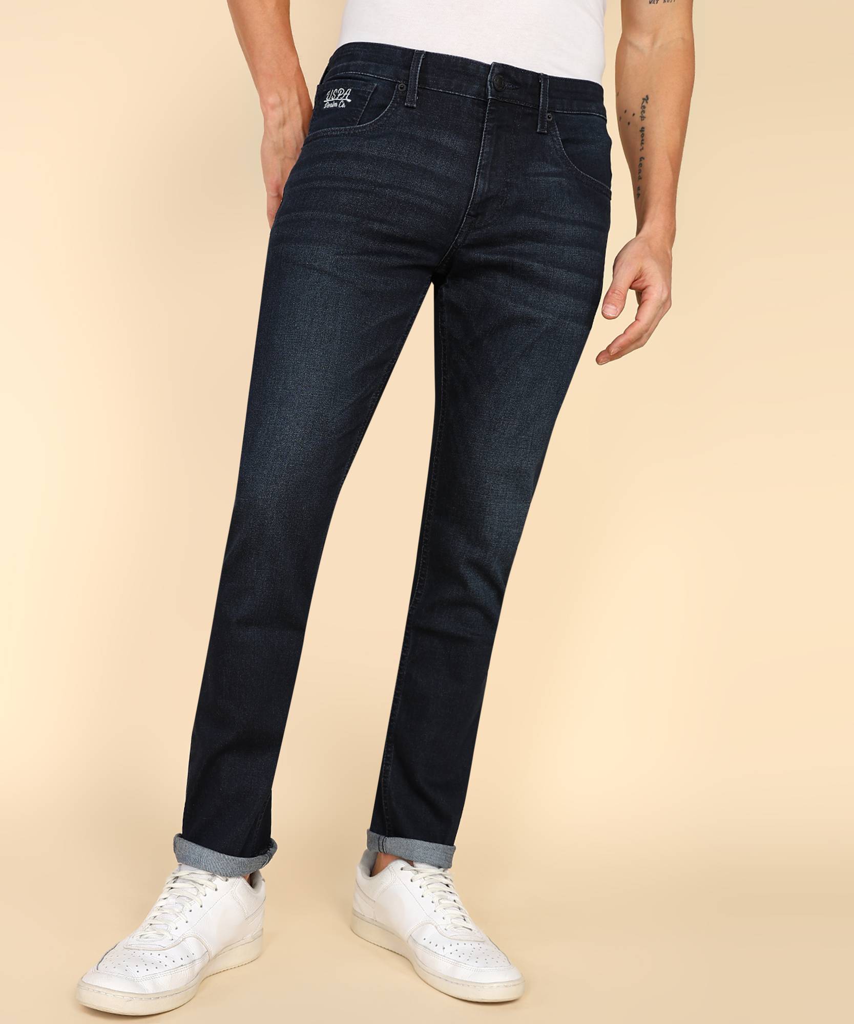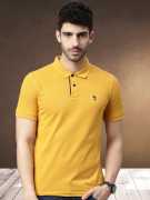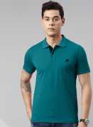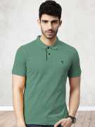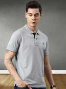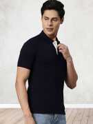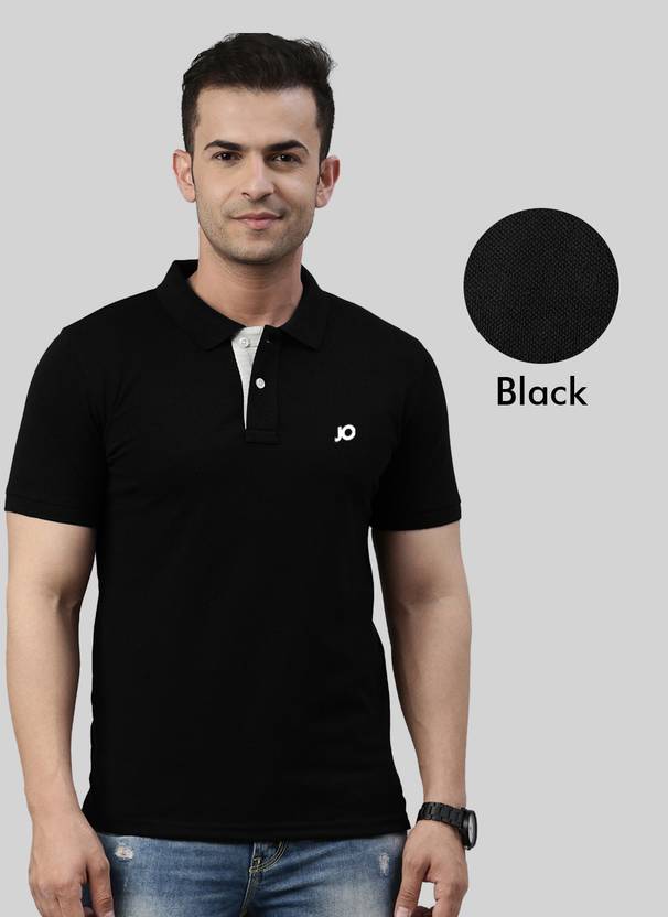 JOVEN Solid Men Polo Neck Black T-Shirt