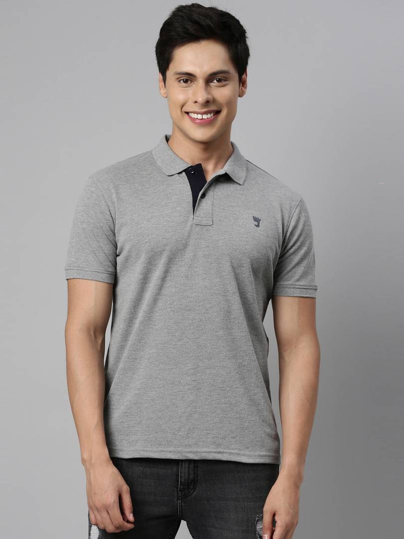 Men Solid Polo Neck Cotton Blend Grey T-Shirt