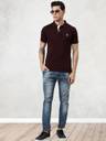 JOVEN Solid Men Polo Neck Maroon T-Shirt