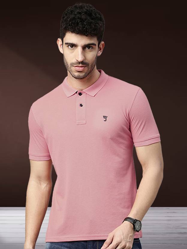 JOVEN Solid Men Polo Neck Pink T-Shirt