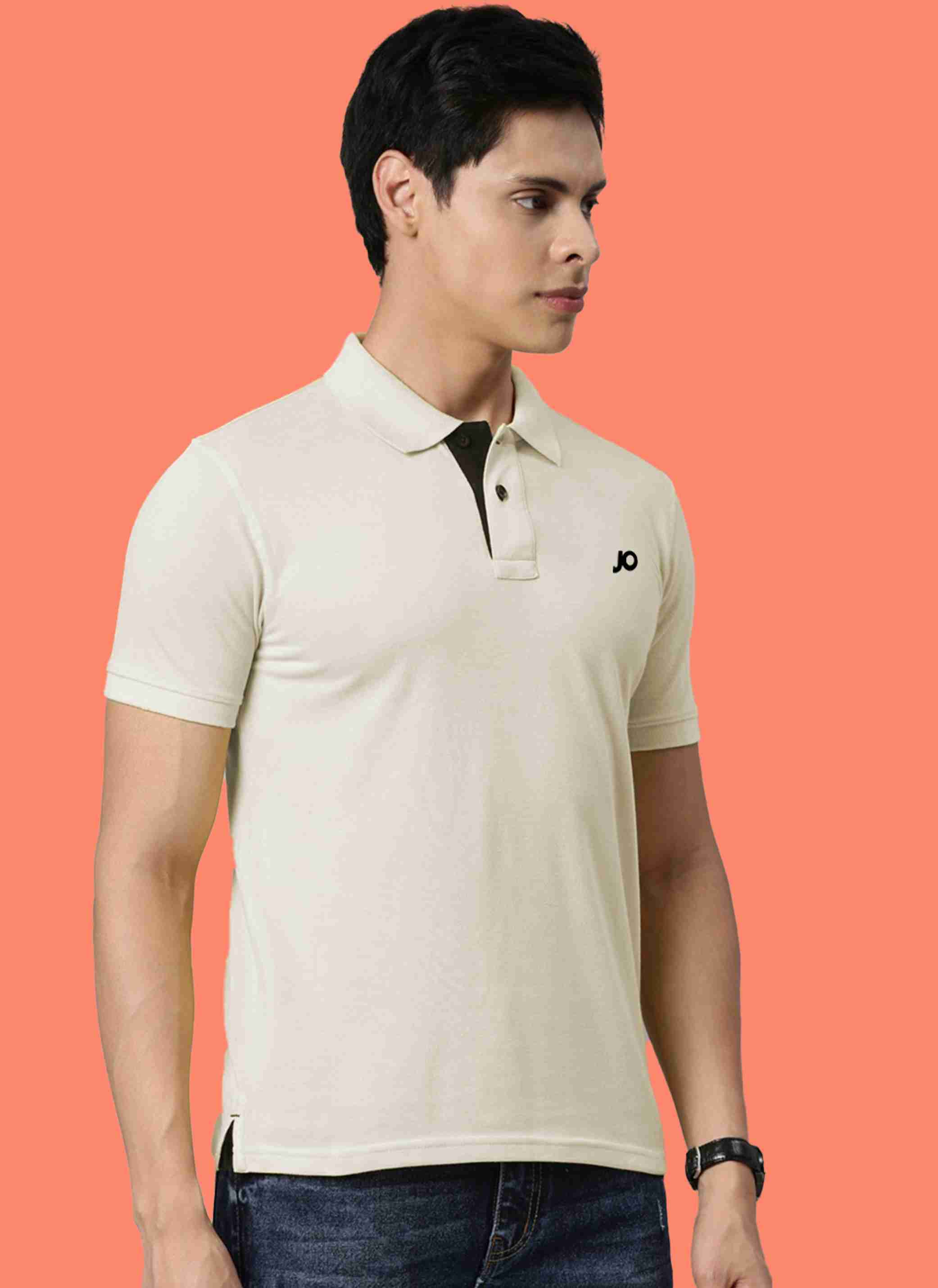 Men Solid Polo Neck Cotton Blend White T-Shirt