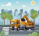 Joy Junction 1:24 Metal Construction Truck Toys and Trailer Set (Rescue Trailer Truck 3) (Yellow)