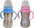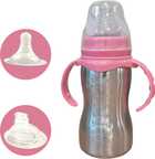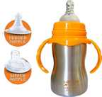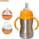 JOYFILLS 2 in 1 Baby Stainless Steel Feeding Bottle for Kids/Infants | Sipper, Nipple - 240 ml (Orange Pack of 1)