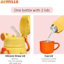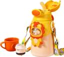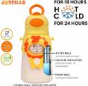 JOYFILLS 3D Animal Kids Sipper Bottle | SUS 316 Steel Thermos Flask with Straw & Cup 500 ml Water Bottle (Set of 1, Yellow)