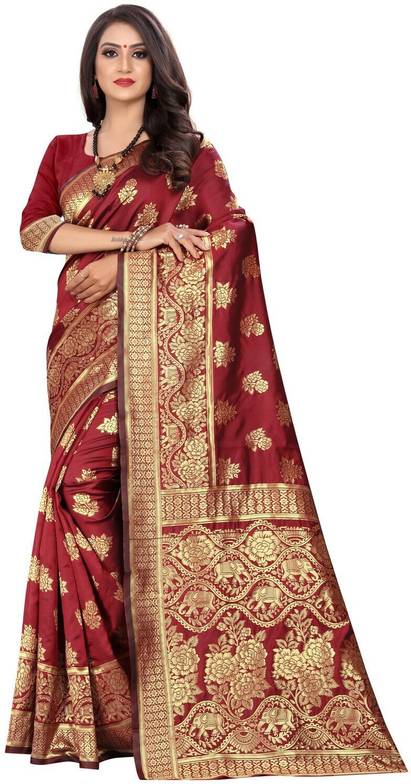 Saree Fabric : Jacquard, Blouse Fabric : Silk Cotton Blend | Saree Length : 5.5 Meter, Blouse Piece Length : 0.8 Meter | Saree Color : Red, Blouse Color : Red | Saree Pattern : Self Design, Woven | Saree Type : Kanjivaram | Occasion : Wedding, Party, Festival, Casual