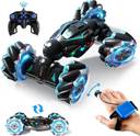 Smart remote control mode: The remote control adopts 2.4ghz transmission technology, which is sensitive to control and ultra-long distance control. And yet another amazing remote control watch. Wear the watch on your hand, change your posture, and the deformable car can sense your posture changes, drive and change at will. Off-Road Multi-Roller Tires: This 4WD RC monster truck is equipped with unique roller traction tires. Off-road mode tackles any terrain - sand, grass, dirt, rocks and more. Crazy stunts and cool features: 1:12 scale remote car can move in all directions, can do 360 ° rotation and double-sided driving, and the four-wheel-drive climbing stunt car has light and music effects and can travel on both sides. Cool functions and unlimited fun give children wonderful operation experience and visual effects. Included Safe Rechargeable Battery: The car is equipped with a rechargeable upgraded 3.7V (1300mAh) battery - a high-capacity high-speed power battery for long-lasting durability. 50-60 minutes of use on a two-hour charge. The remote uses two "1.5V" AA batteries (not included). Best Gift Ideas: 2.4G Stunt Gesture Sensing Twist Buggy with Lights, Music, Drift Traversing, Remote Control, Dancing and more, Creative Birthday Party Gifts for Boys and Girls, Perfect Back to School Gift for Kids, Halloween/Christmas/Giving Your children's day gift or stress relief toy.