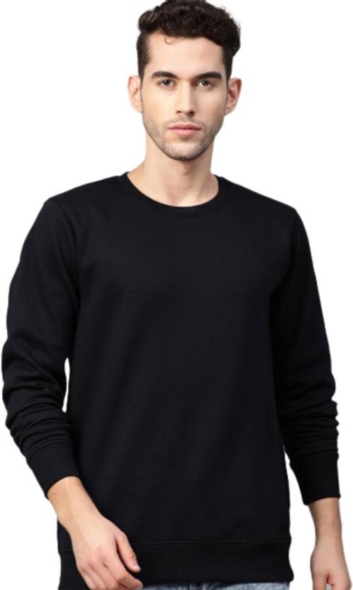 JOZMER Solid Round Neck Casual Men Black Sweater