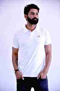 Daiki Men Solid Polo Neck Polyester White T-Shirt