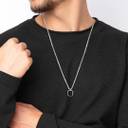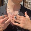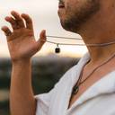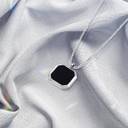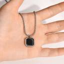 JRISSY Black Stone Square Natural Stone Necklace, Simple Casual Silver Stainless Steel Locket