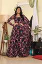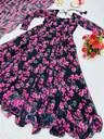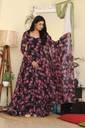 Turn heads at every occasion with this Black Floral Print Georgette Anarkali Gown with Dupatta. Featuring a flattering sweetheart neckline, full sleeves, and elegant pink floral prints, this gown is the perfect blend of modern charm and ethnic grace. The lightweight georgette fabric with soft inner lining ensures comfort and style, making it ideal for parties, festive gatherings, and weddings.
