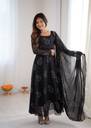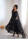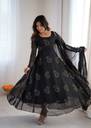 This elegant outfit is crafted from lightweight and flowy georgette fabric, giving it a graceful drape. The gown features a beautiful paisley pattern in rich maroon, adding a traditional charm. The attached dupatta, made of matching georgette, enhances the overall look with its sheer and soft texture, creating a sense of elegance.