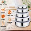 JSI Stainless Steel Fridge Container - 200 ml, 300 ml, 500 ml, 800 ml, 1100 ml (Pack of 5, Silver)