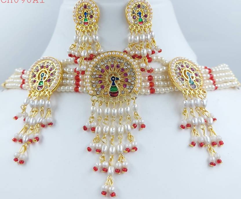 Whether worn with a Rajputi poshak, lehenga, or saree, the Rajputi Chik Set brings out a regal charm and enhances the elegance of any traditional outfit.