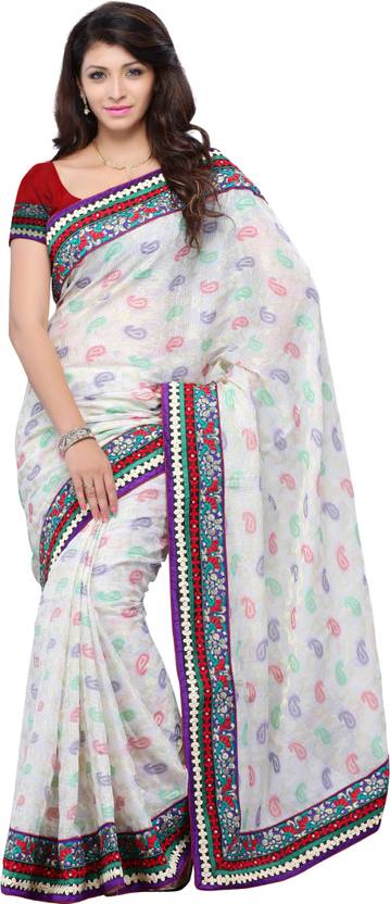 JT International Self Design, Printed Bollywood Art Silk Saree (White)