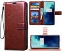 Juberous Flip Cover for OnePlus 7T Pro (Brown, Cases with Holder, Pack of: 1)
