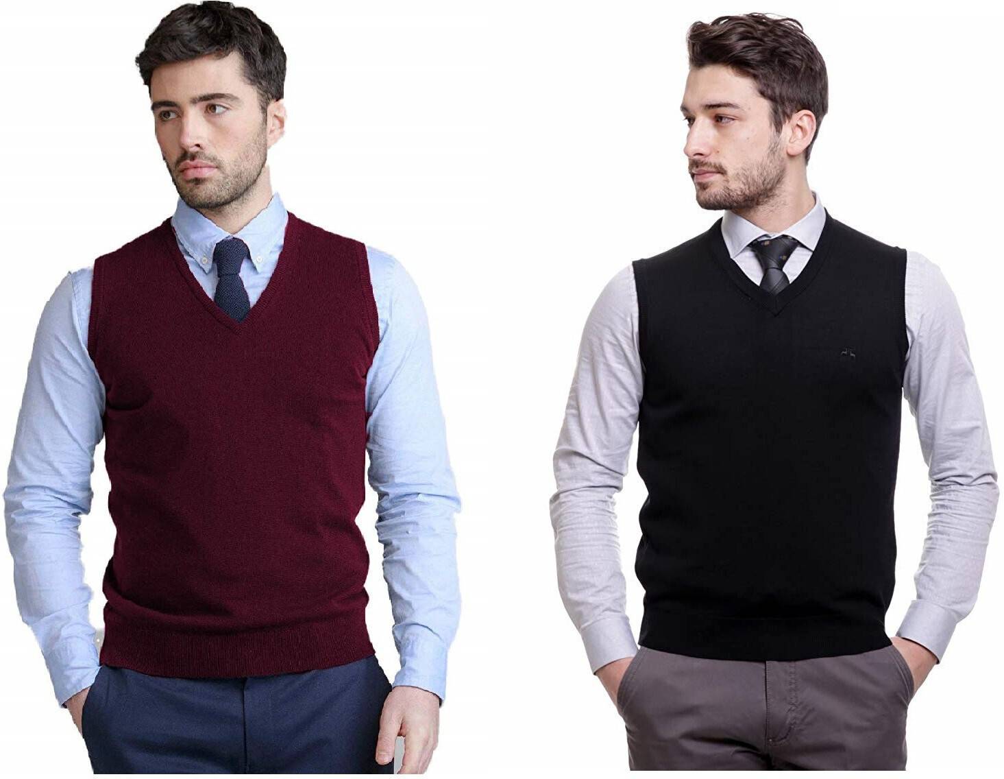 Jubination Solid V Neck Casual Men Reversible Maroon, Black Sweater
