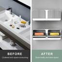 JUDEE Wall Mounted Soap Box with Lid Double Grids Soap Bathroom Soap Holder (White, Grey)