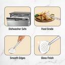 High Quality Stainless Steel: Made Of Premium Stainless Steel With Mirror Touch And Delightful Addition To The Kitchen, Ergonomic Design: With Smooth Touch, Comfortable Grip And Elegant Looks Suits Any Occasion, Easy To Clean: Dishwasher Safe, Polished Quality Stainless Steel Makes Effortless Cleaning, Contents: 1 Stainless Steel Medium Skimmer, Size-27Cm, Color-Silver, 2 Years Warranty On Product, Made In India