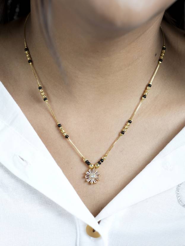 A mangalsutra is a sacred and traditional piece of jewelry worn by married women in many cultures, particularly in India. It symbolizes the marital bond and is often considered a sign of love, respect, and commitment. Typically made with black beads strung on a gold chain, a mangalsutra features a pendant that varies in design—ranging from simple gold shapes to intricate diamond or gemstone-studded patterns. The black beads are believed to protect the couple from evil and bring good fortune. Available in a variety of styles, from classic and minimalist to modern and ornate, mangalsutras are crafted with different metals such as gold, diamond, and platinum, catering to diverse tastes. This piece of jewelry is not only an essential part of the wedding ceremony but also a daily accessory for married women, adding elegance and significance to their attire