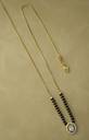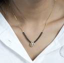 A mangalsutra is a sacred and traditional piece of jewelry worn by married women in many cultures, particularly in India. It symbolizes the marital bond and is often considered a sign of love, respect, and commitment. Typically made with black beads strung on a gold chain, a mangalsutra features a pendant that varies in design—ranging from simple gold shapes to intricate diamond or gemstone-studded patterns. The black beads are believed to protect the couple from evil and bring good fortune. Available in a variety of styles, from classic and minimalist to modern and ornate, mangalsutras are crafted with different metals such as gold, diamond, and platinum, catering to diverse tastes. This piece of jewelry is not only an essential part of the wedding ceremony but also a daily accessory for married women, adding elegance and significance to their attire