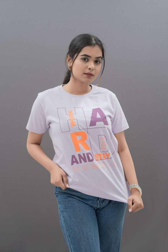 JUGGADUÂ Women Typography Round Neck Pure Cotton Purple T-Shirt