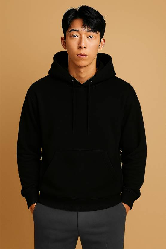 Men Full Sleeve Solid Hooded Sweatshirt