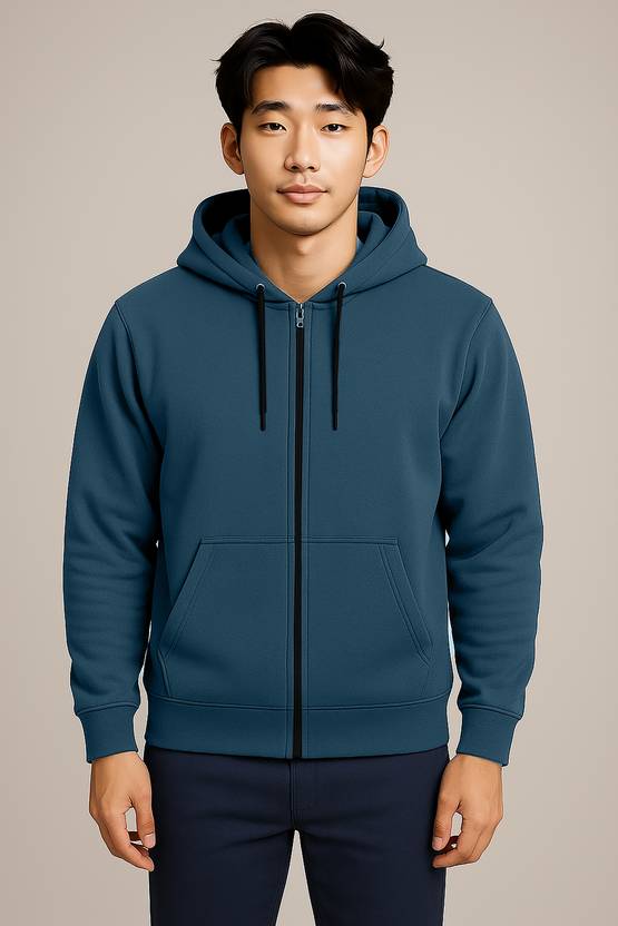 Men Full Sleeve Solid Hooded Sweatshirt
