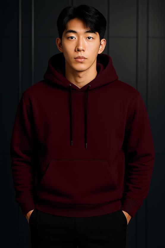 Men Full Sleeve Solid Hooded Sweatshirt