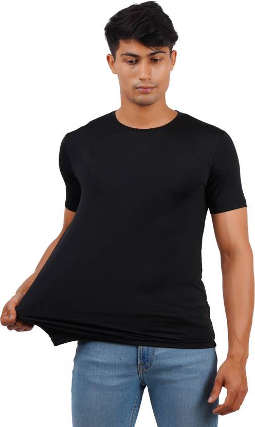 JUGULAR Solid Men Round Neck Black T-Shirt