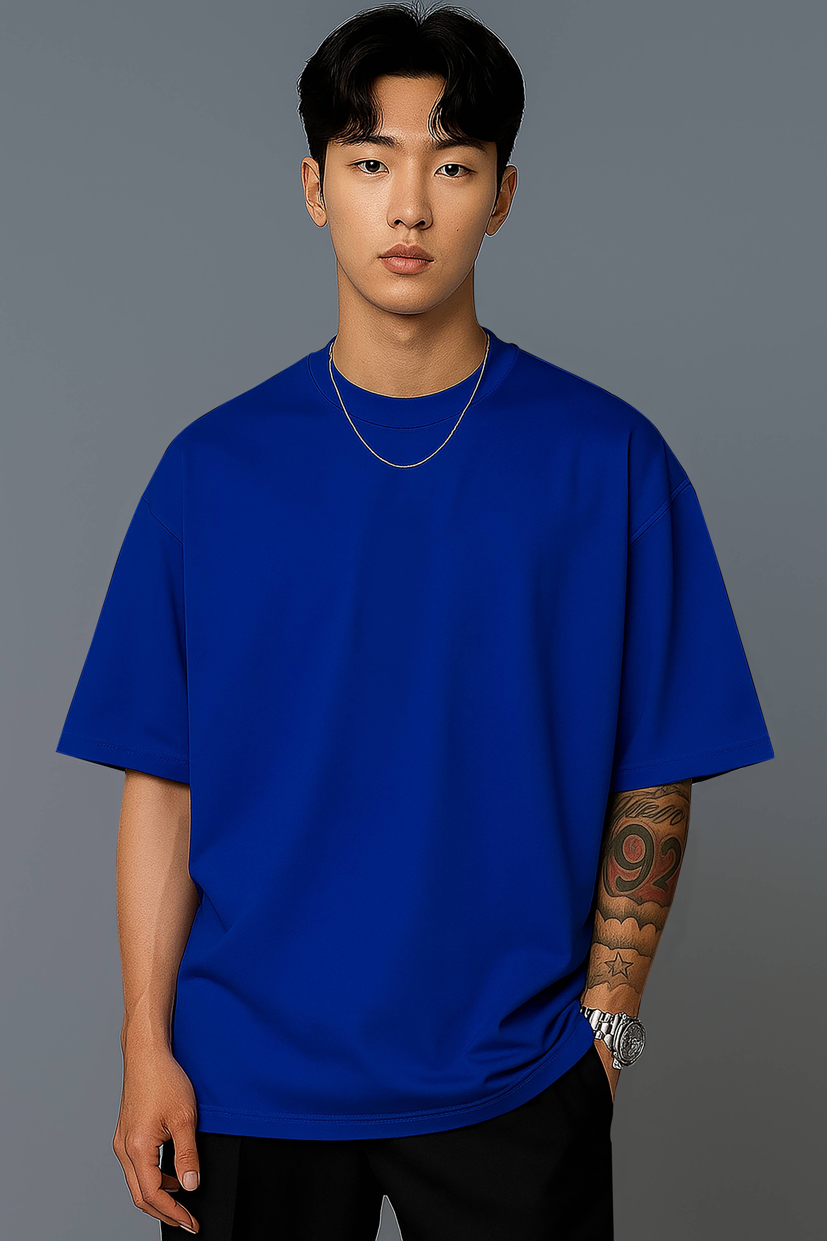 JUGULAR Solid Men Round Neck Dark Blue T-Shirt