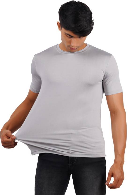 JUGULAR Solid Men Round Neck Grey T-Shirt