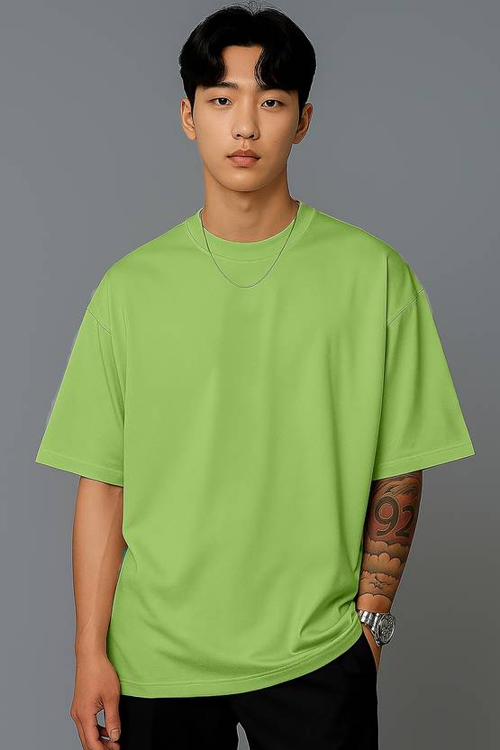 JUGULAR Solid Men Round Neck Light Green T-Shirt