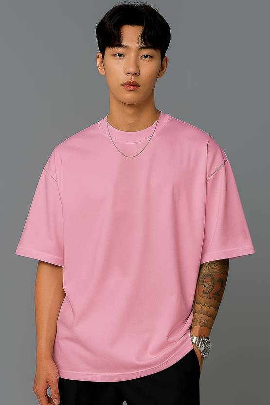 JUGULAR Solid Men Round Neck Pink T-Shirt
