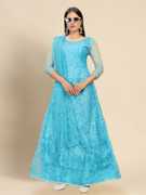 Color : Sky, This Women's Net Embroidered Semi-Stitched Gown is a stunning ensemble designed to make any occasion special. Crafted from high-quality net fabric. The gown features intricate embroidery work, adding a touch of sophistication and glamour. The semi-stitched design allows for customization to fit individual body shapes perfectly, ensuring both comfort and style. This gown is sure to turn heads at weddings, parties, or any formal event.Gown is Comes With Inner and Dupatta Available 2.20 Meter.Gown Length is 57 Inch. It hasIt has Half Sleeves with Embroidered Work. Gown is Semi-Stitched which can be fitted up to 44 inch Bust Size. Dry Clean Or Normal Hand Wash.