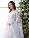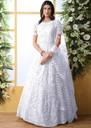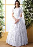 Colour : White, Fabric: Net, Work : Chain Stitch Embroidered, Gown is Comes With Inner and Dupatta Available 2.20 Meter.Gown Length is 57 Inch. It has 3/4 Sleeves with Embroidered Work. Gown is Semi-Stitched which can be fitted up to 44 inch Bust Size. Dry Clean Or Normal Hand Wash.