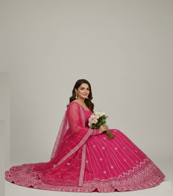 Color : Rani, Introducing our Women's Net Embroidered Semi-Stitched Gown.The modern woman who appreciates tradition and style will find her ideal match in our Women's Net Embroidered Semi-Stitched Gown. You will look and feel your best on your wedding day thanks to the special quality and to detail that have gone into each piece.Gown is Comes With Inner and Dupatta Available 2.20 Meter.Gown Length is 57 Inch. It has Full Sleeves with Embroidered Work. Gown is Semi-Stitched which can be fitted up to 44 inch Bust Size. Dry Clean Or Normal Hand Wash.