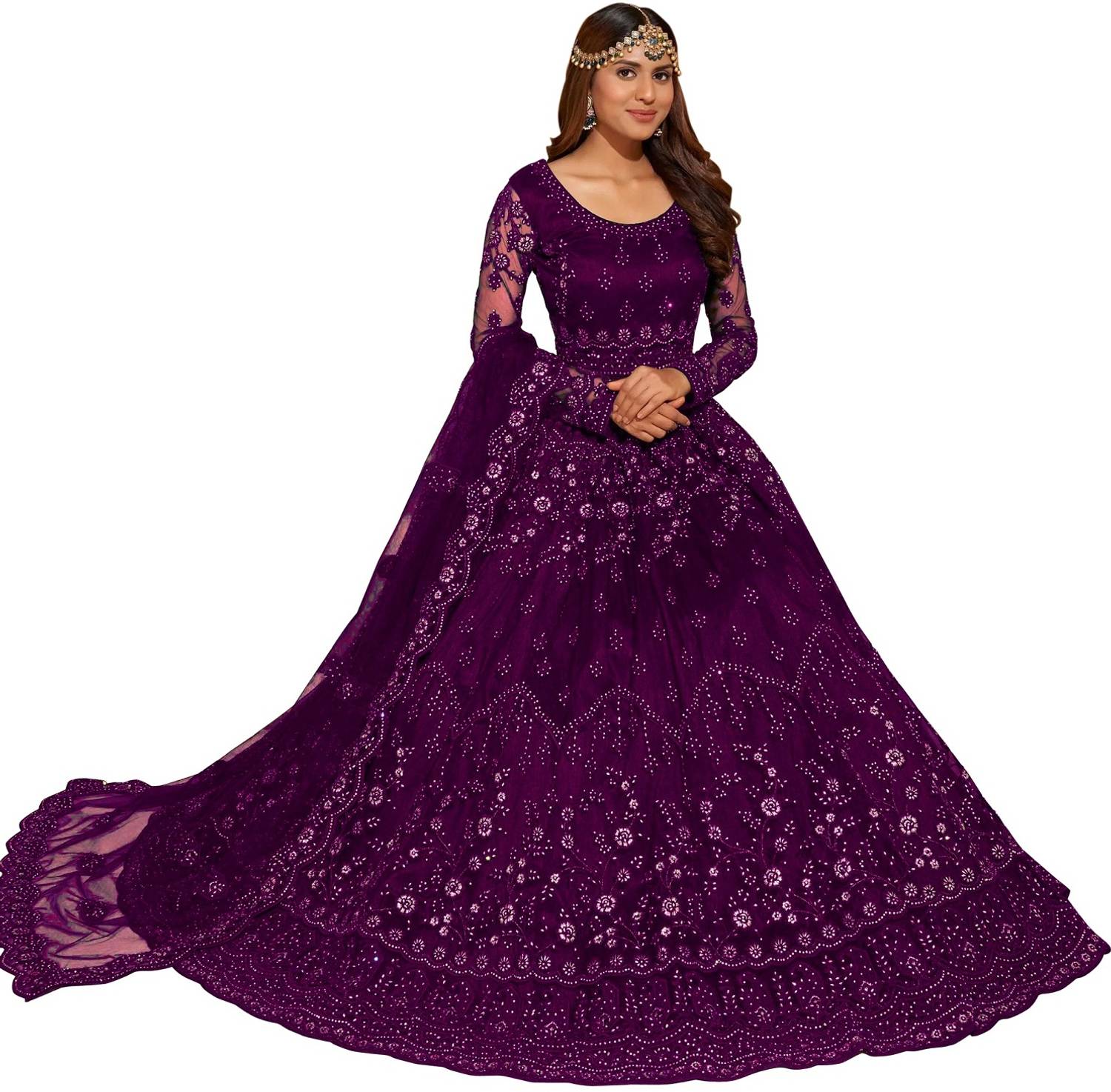 Color : Magenta, Introducing our Women's Net Embroidered Semi-Stitched Gown.The modern woman who appreciates tradition and style will find her ideal match in our Women's Net Embroidered Semi-Stitched Gown. You will look and feel your best on your wedding day thanks to the special quality and to detail that have gone into each piece.Gown is Comes With Inner and Dupatta Available 2.20 Meter.Gown Length is 57 Inch. It has Full Sleeves with Embroidered Work. Gown is Semi-Stitched which can be fitted up to 44 inch Bust Size. Dry Clean Or Normal Hand Wash.