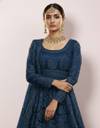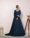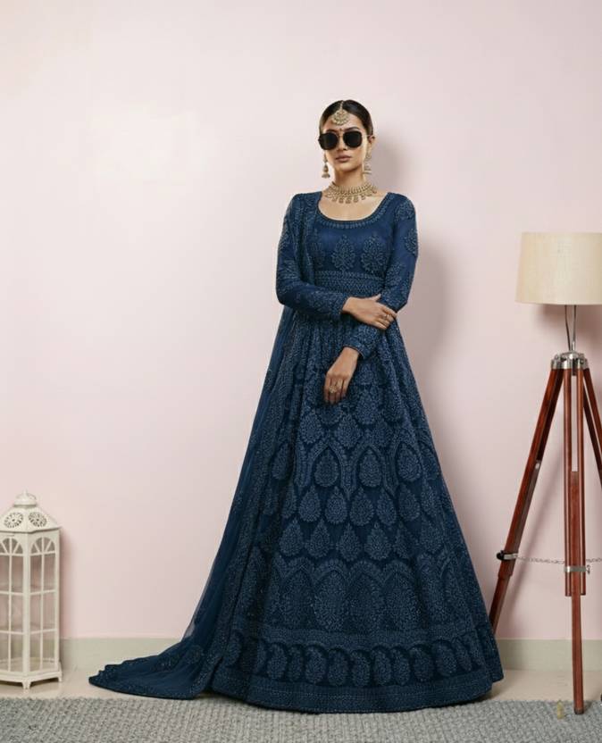 Julee Embroidered Net Semi Stitched Flared/A-line Gown  (Blue)