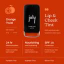 July Lip & Cheek Tint | 3in1 for Lips, Cheek & Eyelids | SPF 15 | 24hr Moisturization Orange Twist (Pack of: 1, 10 g)
