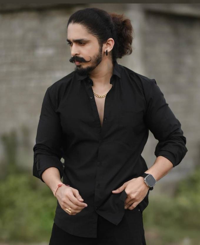 Zabalo Men Solid Casual Black Shirt