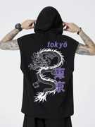 Jump Cuts Printed Men Hooded Neck Black, Purple T-Shirt