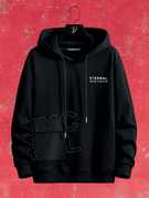 Jump Cuts Printed Men Hooded Neck Dark Blue T-Shirt
