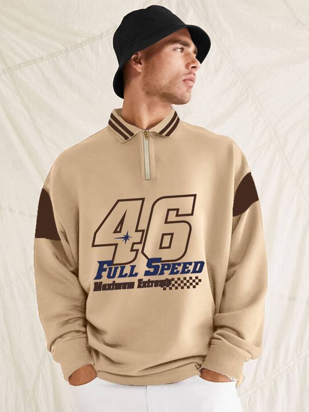 Jump Cuts Printed Men Polo Neck Beige T-Shirt