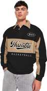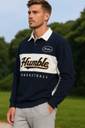 Jump Cuts Printed Men Polo Neck Navy Blue T-Shirt