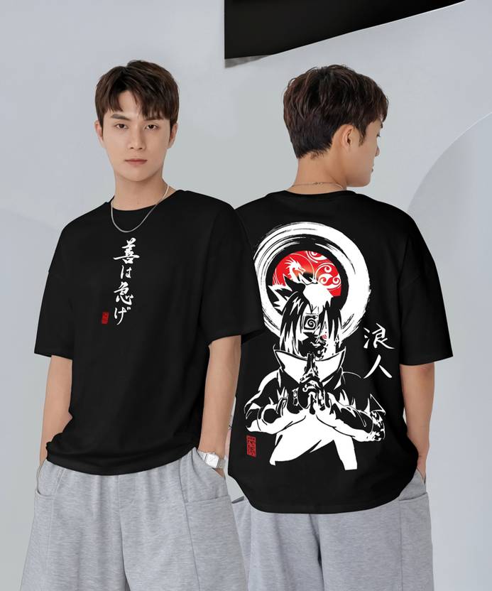 Jump Cuts Printed Men Round Neck Black T-Shirt