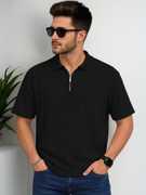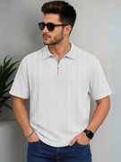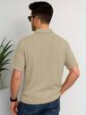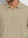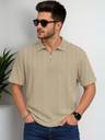 Jump Cuts Self Design Men Zip Neck Beige T-Shirt