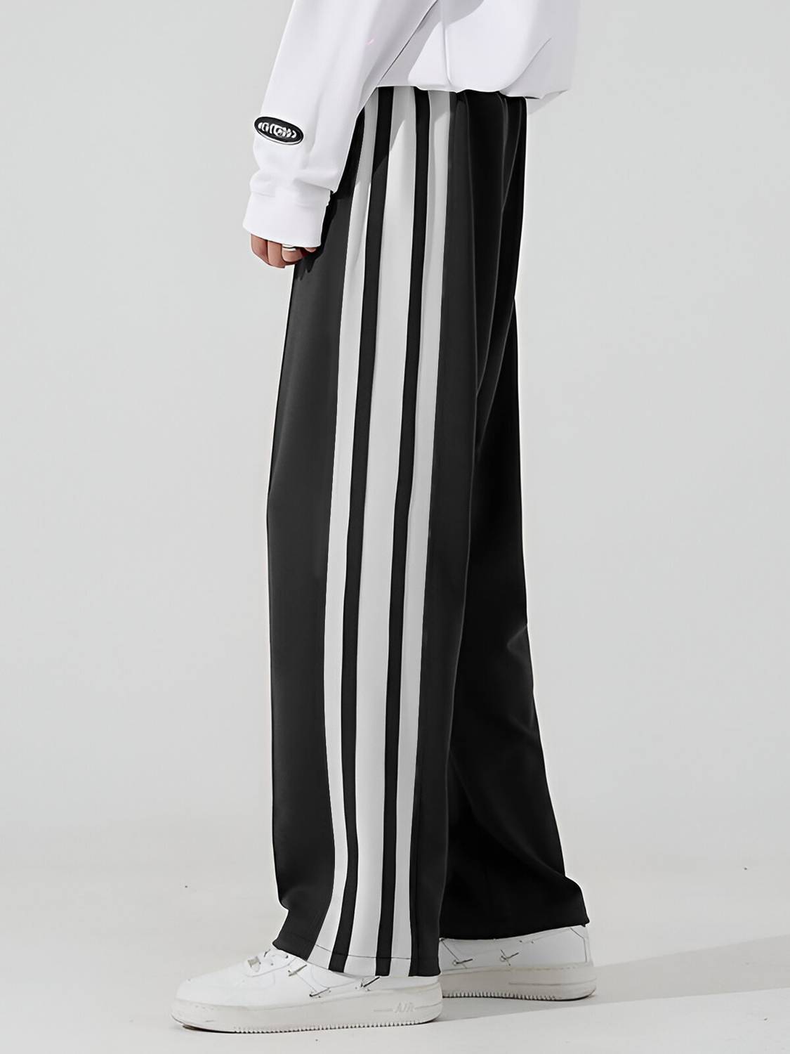 Jump Cuts Striped Men Black, White Track Pants