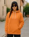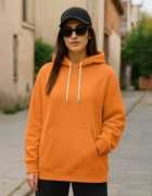 Elevate your fashion game with our Juneberry Women's Orange Hooded Fleece Hoodie. Made from a cozy 280 GSM Cotton Poly blend, this full sleeve hoodie boasts a captivating solid design, practical kangaroo pockets, and a warm hooded neck, offering the perfect blend of comfort and style.